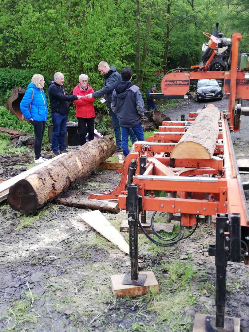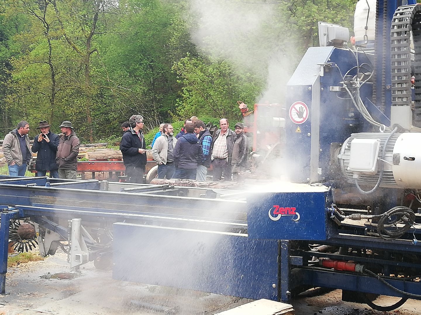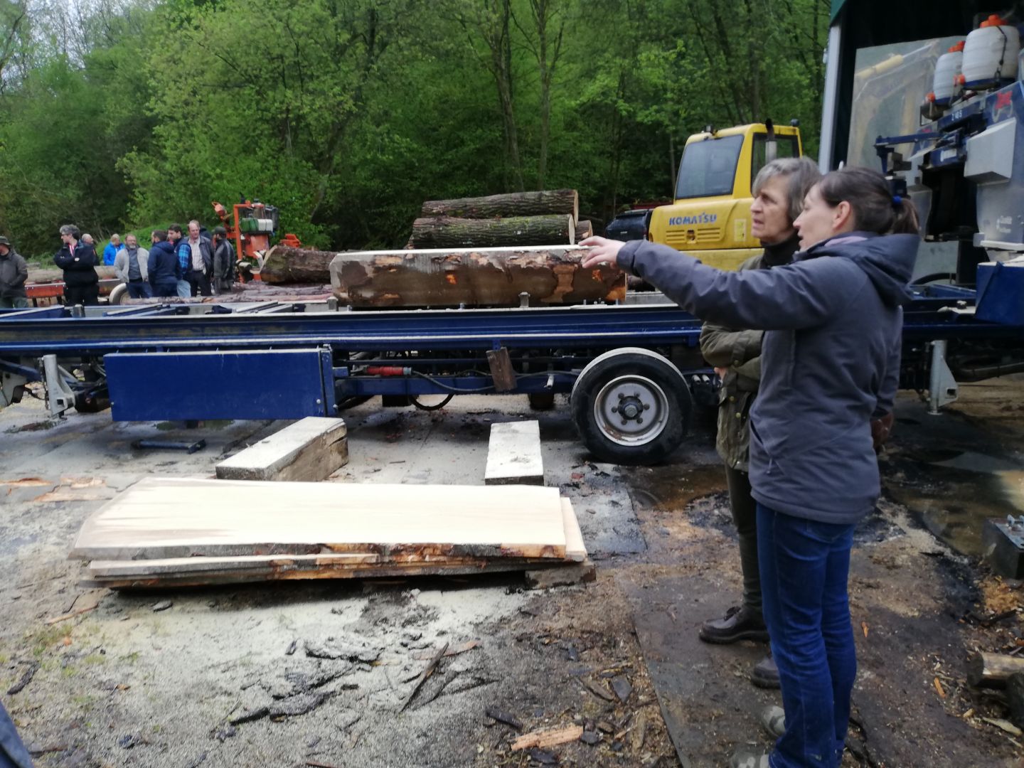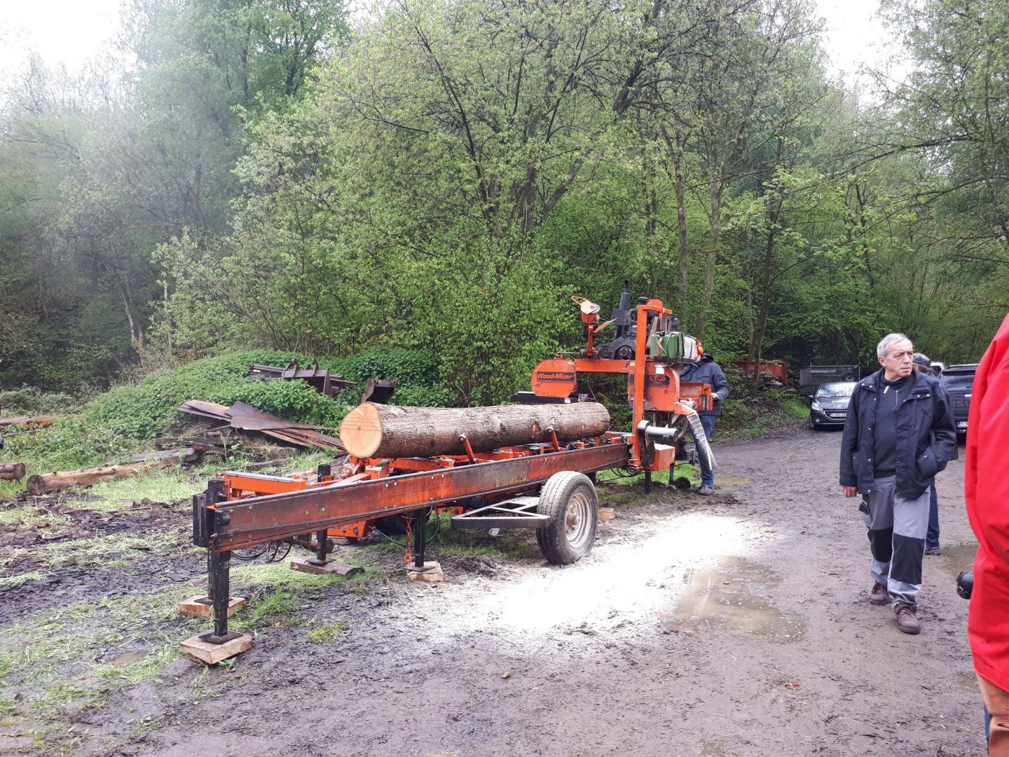 Le 2 mai dernier, Mathieu Verlaine et Jérôme Kallen ont proposé une démonstration de leurs scies mobiles à une quarantaine de personnes très intéressées. Permettant de valoriser des petits lots de bois sur site ou même de scier des grumes de dimensions trop importantes pour les scieries classiques, ces outils offrent de nouvelles possibilités aux propriétaires forestiers, notamment en cette période de crise sanitaire (scolytes). Elles représentent également une nouvelle source d’approvisionnement pour les menuisiers et autres utilisateurs de bois, à condition que le stockage des bois sciés soit envisagé.