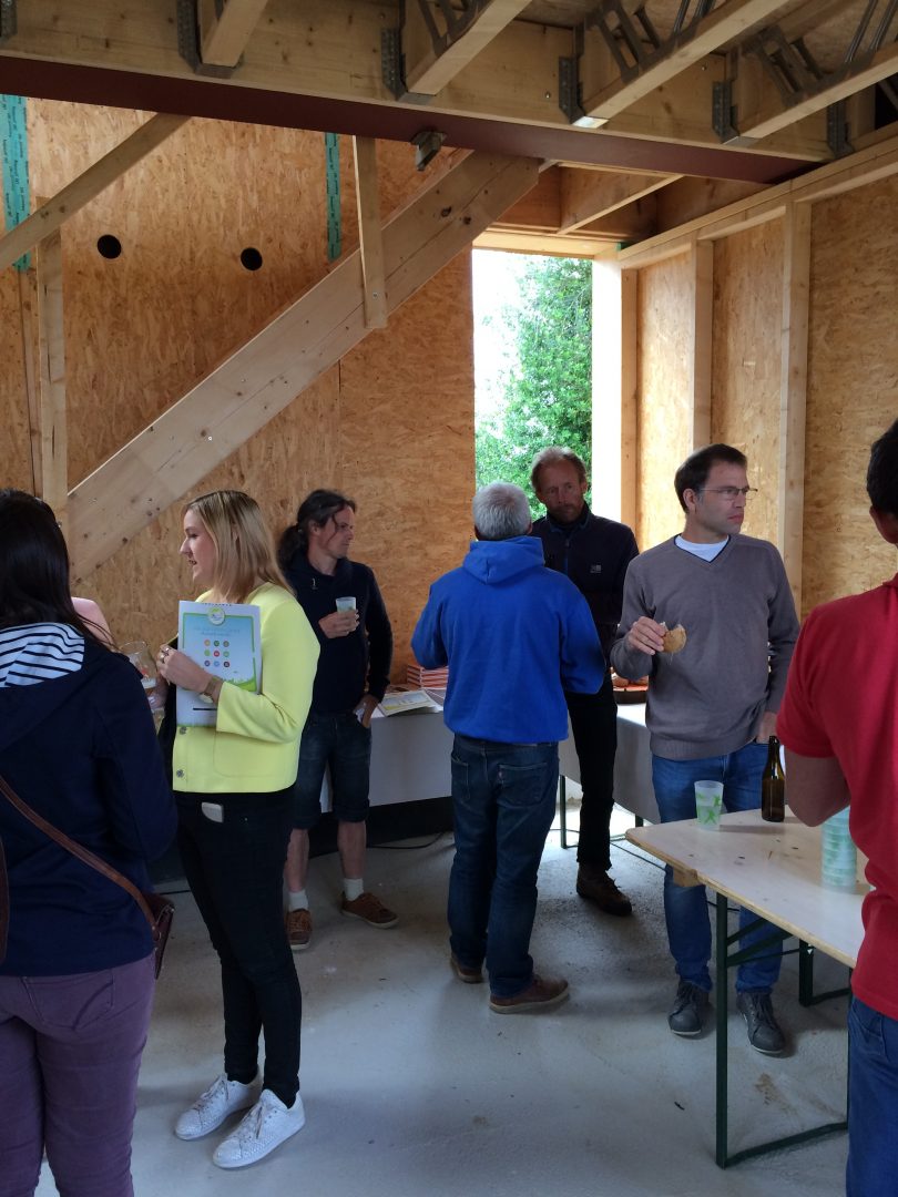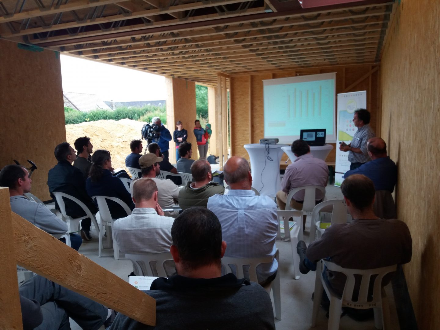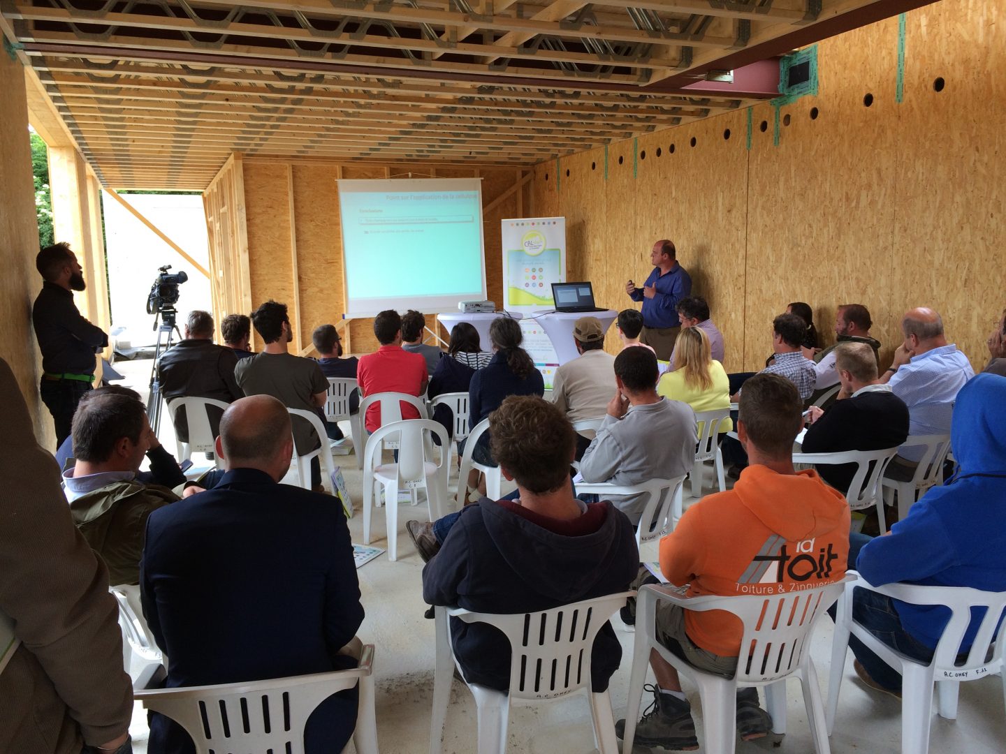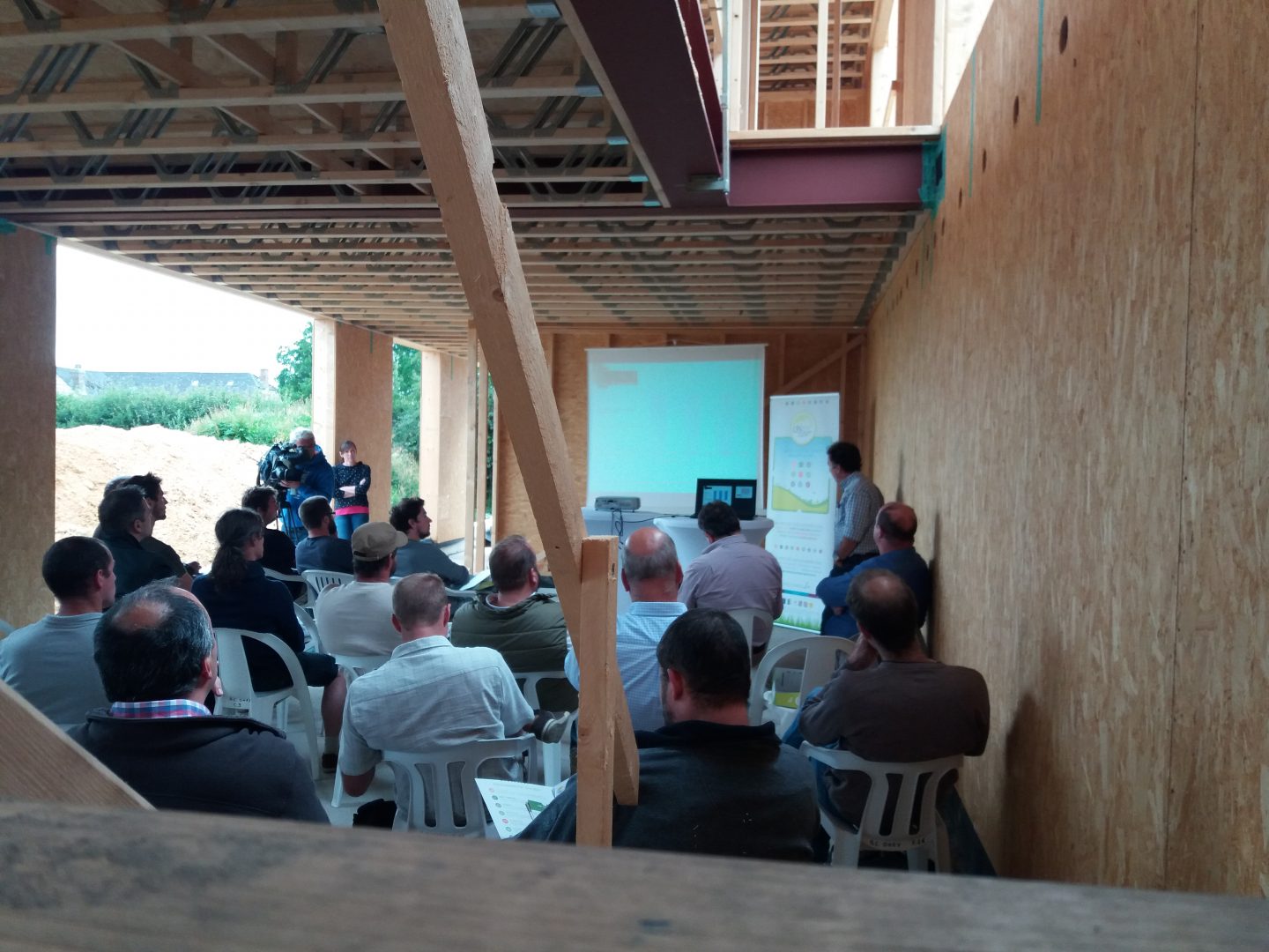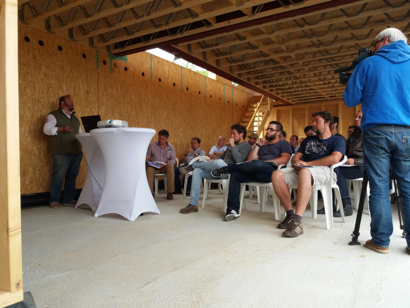 Les participants ont ensuite pu visiter le chantier de construction d’une maison unifamiliale de la société Maisons Bois Meunier (Chimsco Groupe). L’occasion pour les architectes, les constructeurs bois, les menuisiers, scieurs et exploitants d’échanger sur les différentes techniques mises en œuvre et sur l’approvisionnement en bois. Des particuliers, intéressés de construire leur propre maison en bois étaient également présents et ont pu se faire une idée plus précise.